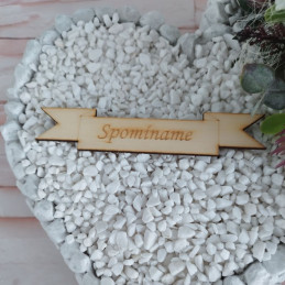 Srdce v srdci z kameniny vyplnené bielymi drobnými kamienkami a ozdobené rôznymi kvietkami a trávovými doplnkami.